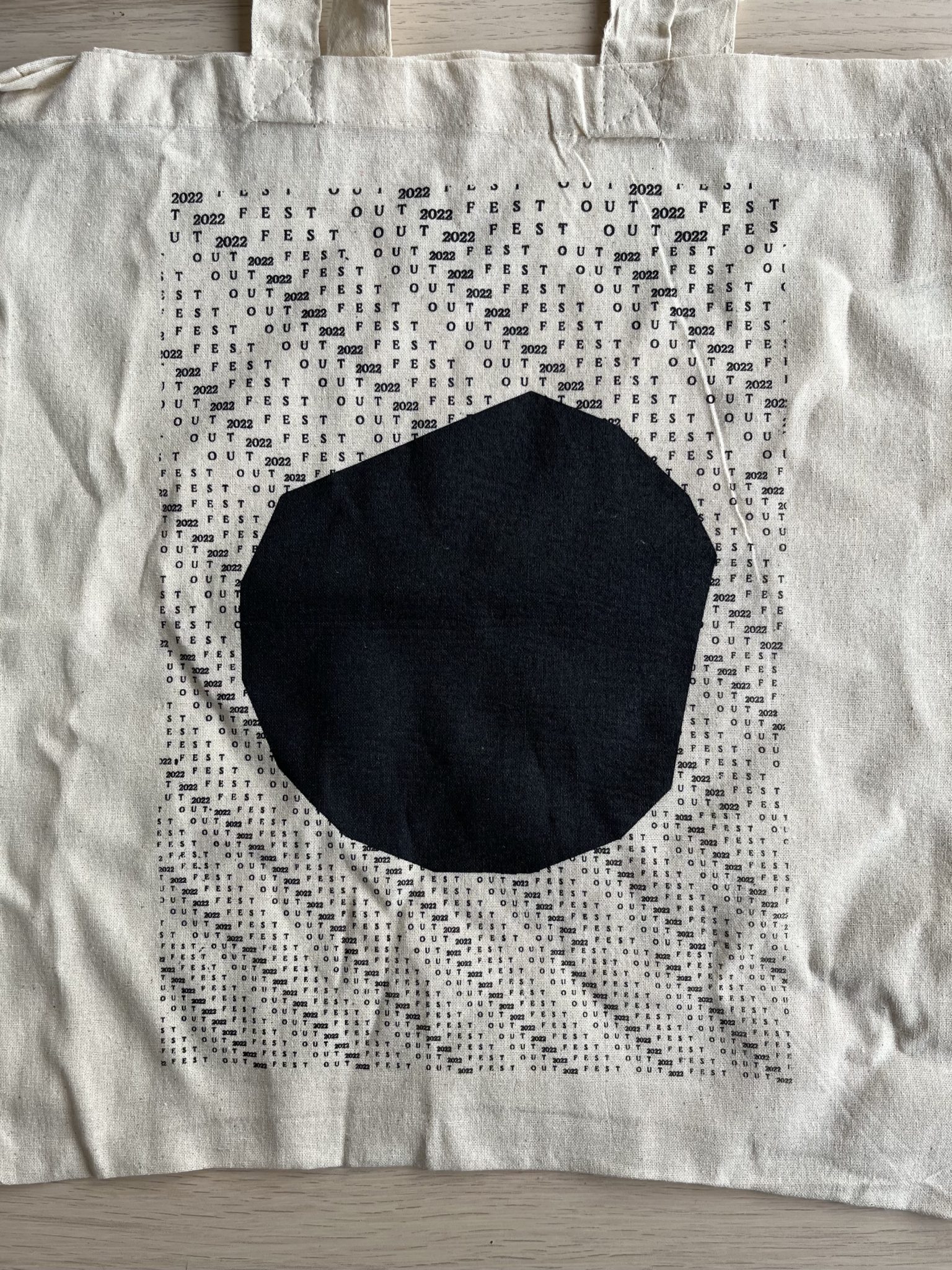 OUT.FEST 2022 tote bag in raw canvas. Design: José Mendes